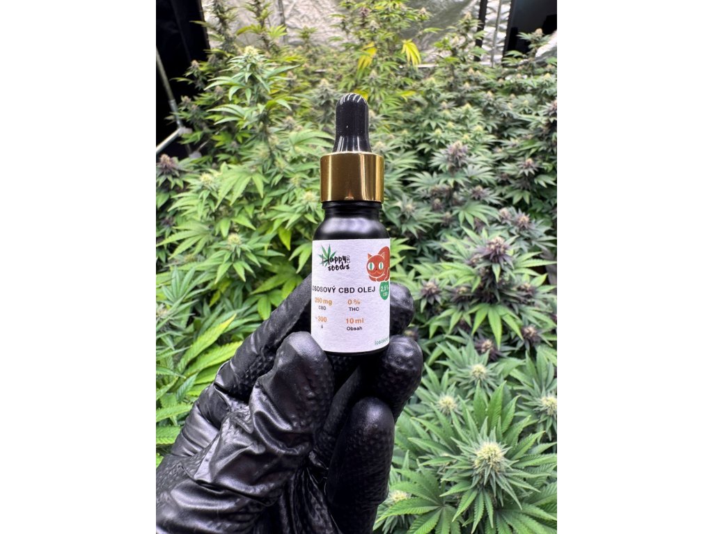 Lososový olej s CBD 2,5 % od značky Happy seeds určen pro domácí zvířata v lahvičce o objemu 10 ml nebo 30 ml.