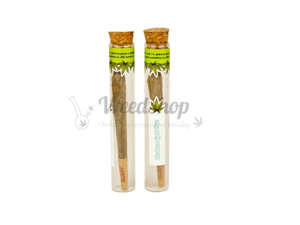 Kvalitní a čerstvé české CBD konopí, hnojené pouze organickými hnojivy, odrůdy Northern Light Blue s obsahem CBD až 14 % a zároveň s obsahem THC do 0,5 % balené v papírku oblíbené značky kuřáckých potřeb RAW v nejpoužívanější velikosti King Size - 110 mm, který zaručuje pomalé a rovnoměrné hoření spolu s papírovým RAW filtrem, a to vše uchované ve skleněné nádobě - joint tubě, uzavřené korkovým uzávěrem, která je vhodná k opakovanému použití a zabraňuje snížení kvality našeho produktu. Obsah každého CBD jointu je cca 0,9 - 1,1 gramu konopí odrůdy Northern Light Blue.