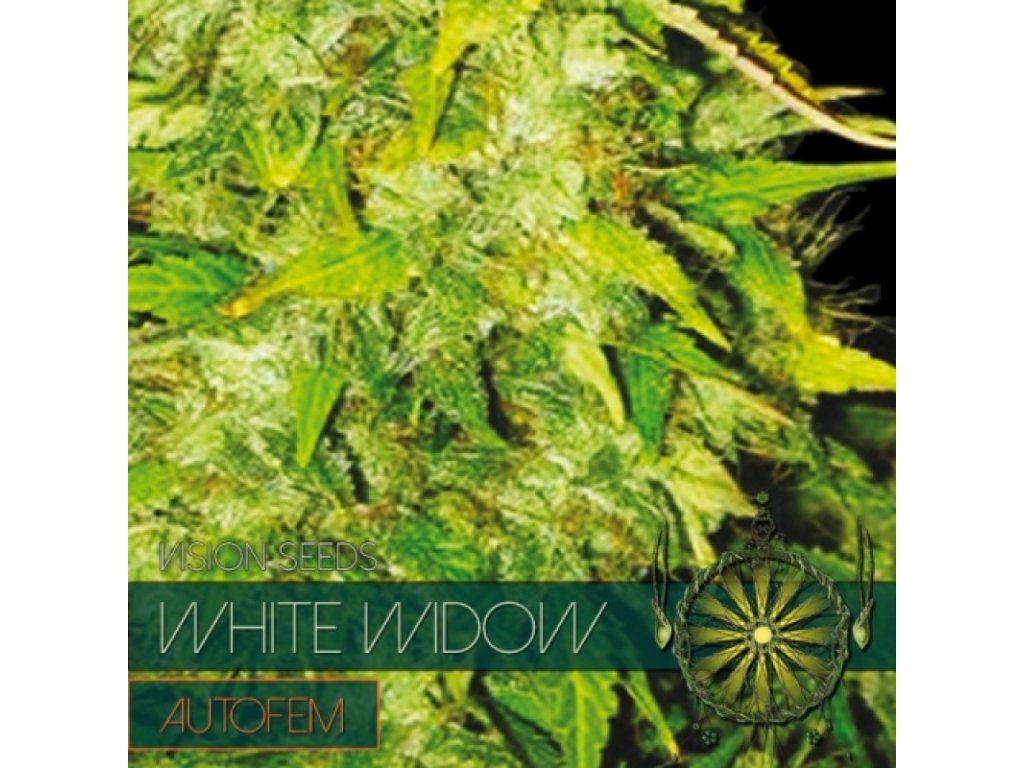 Samonakvétací semena konopí, která jsou zároveň feminizovaná se jménem White Widow AutoFem od značky Vision Seeds.